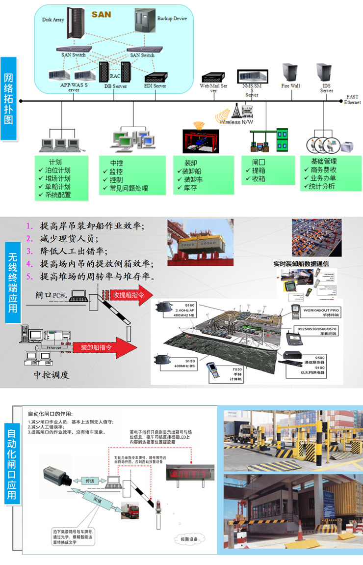 码头生产采用计算机管理系统,实现了数据传输和智能监控,客户、生产指挥信息处理标准化、规范化、科学化。