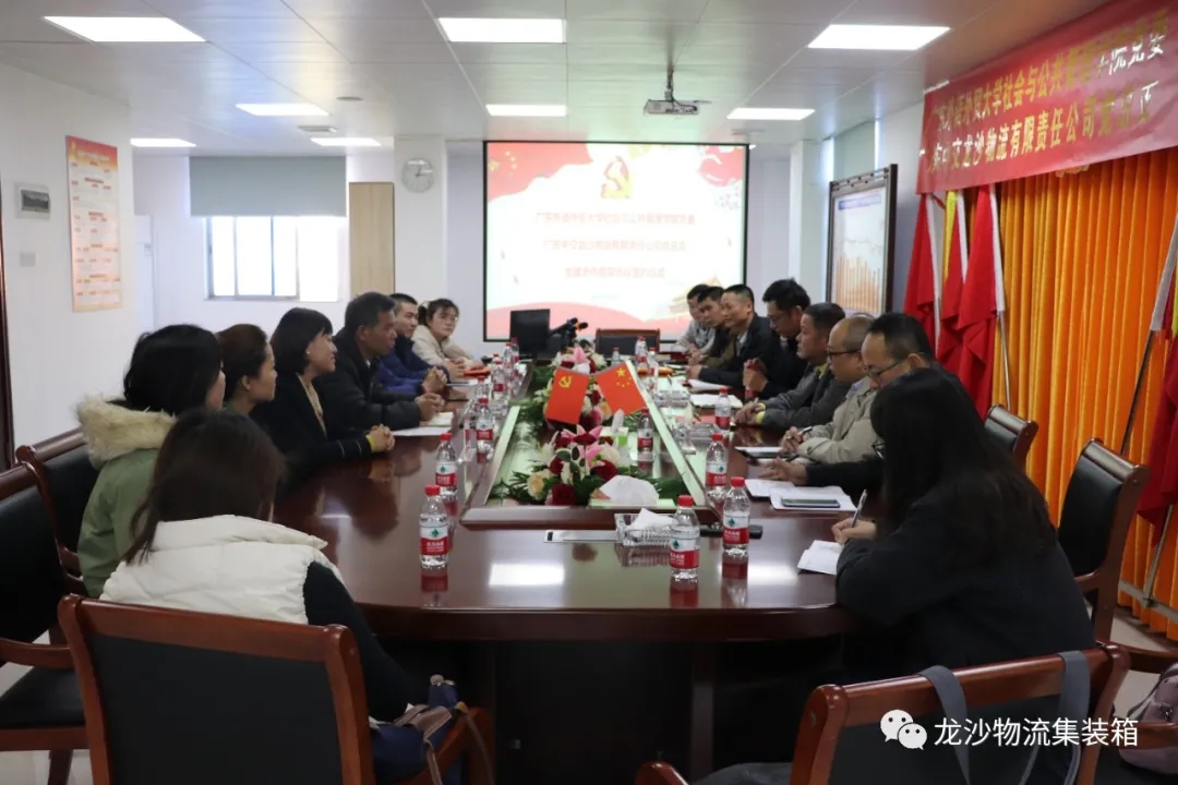 龙沙公司党总支书记、常务副总经理刘文喜、龙沙公司党总支委员、总经理杨日祥、龙沙公司党总支委员、副总经理张程业、广外社会与公共管理学院党委书记高云坚、广外社会与公共管理学院党委副书记陈哲、广外社会与公共管理学院教授付桂芳,龙沙物流公司及学校相关党员代表参加。