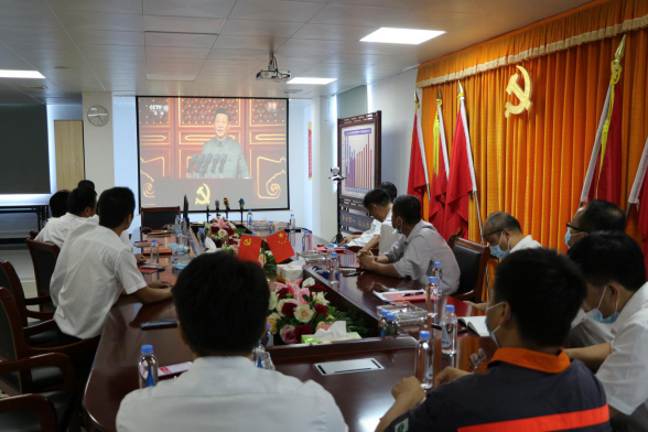收看学习组织:本单位由党群工作部统一安排部署,于7月1日安排机关支部所有党员干部、各支部书记、2020年度优秀党员代表和党务工作者在公司四楼会议室,通过网络视频投影的方式,集中收看习近平总书记“七一”重要讲话现场直播。除正在操作岗位意外其他员工在个人工作岗位上通过电脑或手机收看学习,因客观原因未能及时收看的员工在会后收看学习视频回放。