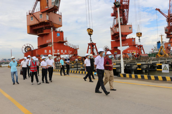 7月6日下午,广州港股份邓国生总经理带队调研龙沙物流公司龙沙码头生产经营工作,并详细检查了龙沙码头安全环保、疫情防控工作,马金骑副总、生产业务部鹿涛副部长等领导参与调研、检查,龙沙物流公司总经理杨日祥、常务副总刘文喜、副总经理张程业陪同。