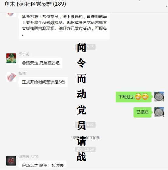 4月28日下午,广州市疫情反复,各区紧急开展一次全员核酸检测,各社区招募党员志愿者支援核酸检测现场。疫情就是命令,新冠疫情防御战集结号再次响起,龙沙公司各支部党员闻令而动,几乎同一时间主动请战,关键时刻站前排、显担当。