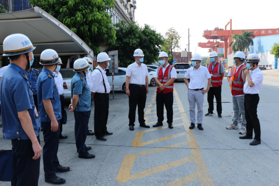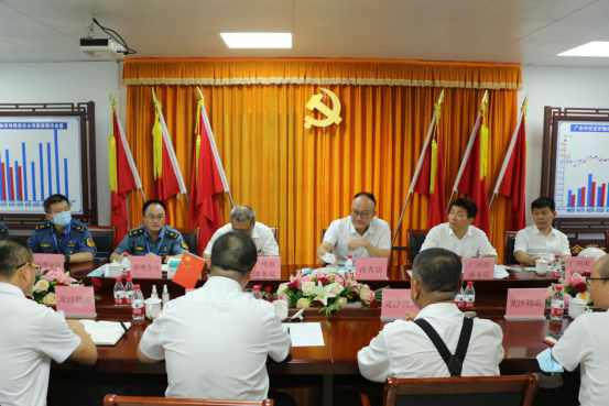 孙秀清带队深入龙沙物流公司广浚码头现场,实地查看码头生产情况后,现场主持召开生产经营座谈会。详细了解龙沙物流今年的生产经营、安全生产和疫情防控等情况。龙沙物流公司党总支书记黄正东对广州市港务局一直以来给予的支持表示感谢,并介绍了公司上半年在生产业务、项目建设等方面的情况。