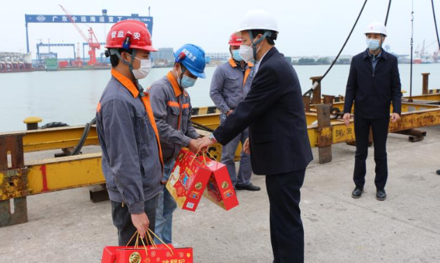 朱少兵副总经理一行来到码头前沿,详细了解现场作业和节前安全生产落实情况,并对现场一线人员送上节前的慰问,勉励留穗过年坚守岗位的员工要落实做细安全生产各项工作,努力实现1月份生产开门红。员工们倍受鼓舞,纷纷表示将一如既往做好本职工作,尽心尽责,为公司更高质量发展贡献力量。