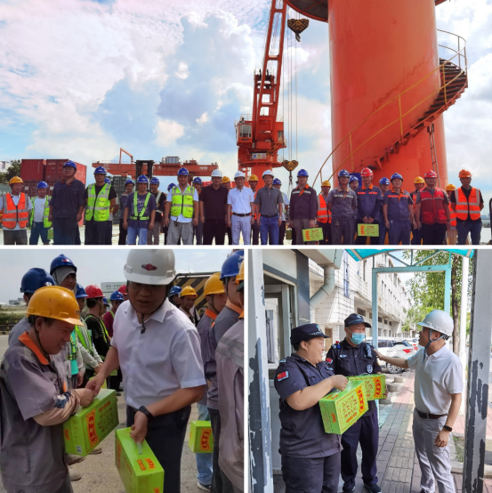 夏日炎炎,骄阳似火,为传递公司对一线员工关心关爱,保障员工身体健康,8月22日,龙沙物流公司党总支书记朱应高、副总经理张程业、工会主席黎锐志先后来到广浚码头和龙沙港,逐一慰问了门机司机、理货、箱管、拖车司机等坚守在高温作业区的一线员工,为他们送上防暑降温清凉饮料。领导们叮嘱大家近期高温天气持续,在工作中不仅做好自我防护,还要注意做好防暑降温,科学安排作息时间及工作任务,安全生产,及时补充水分和准备应急药品,避免中暑,并对员工们的辛勤付出表达了由衷的感谢。员工们纷纷表示,在酷热的夏天,不仅身体感受到了清凉,心里也温暖了起来,切实感受到公司及工会的浓情关怀。