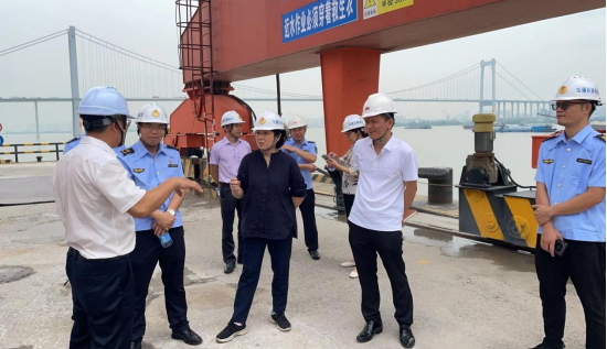 2024年8月13日上午,广州市港务局袁越副局长带队到龙沙港开展安全环保检查及调研工作。港务局番禺分局局长蒙培奇、广物物流副总经理兼龙沙公司总经理黄振清参加。